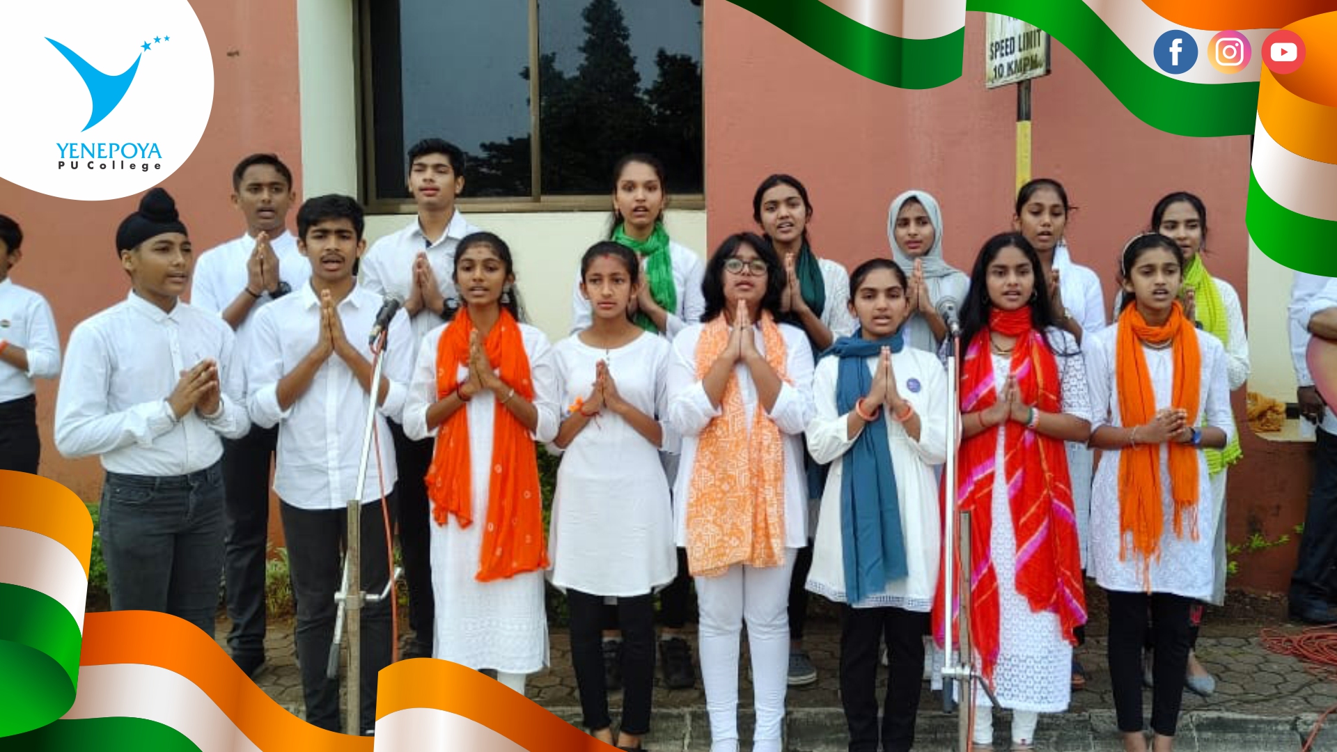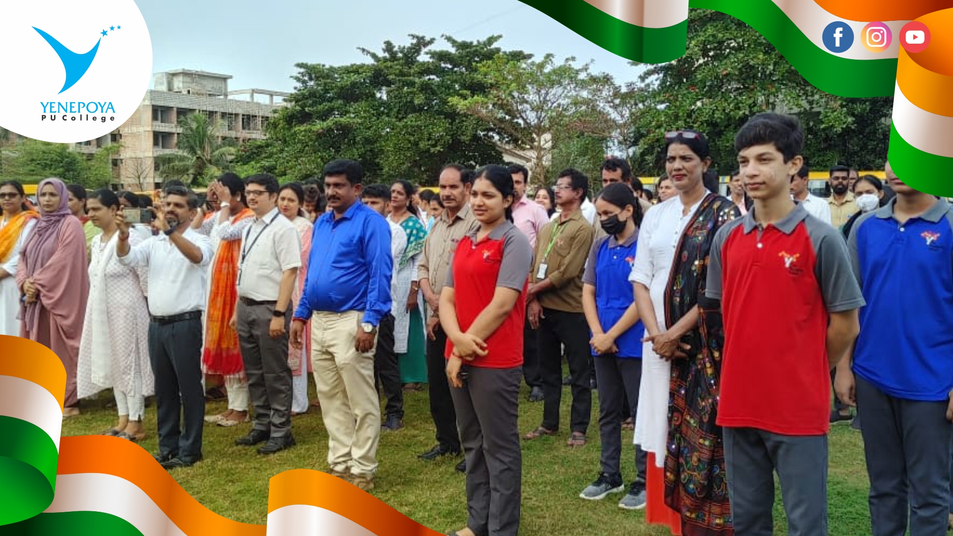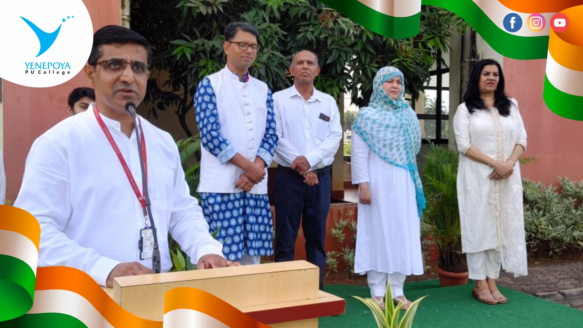 Independence Day celebrations was held at The Yenepoya School on August 15, 2022 in the school premises. The whole atmosphere was filled with a sense of pride and patriotism. The programme commenced at 8.30 a.m. with the hoisting of the tri- colour flag by the Campus Director, Mrs. Mishria Javeed, together with the Principal, Mr. Ujwal Menezes and Campus coordinator, Mrs. Euvet Pereira. National Anthem was sung which was followed by a patriotic song. Ananya Prasad compered the programme. The event began with a prayer service by the choir group. Head Boy, Mohammed Adaan Hamad read the National Pledge.