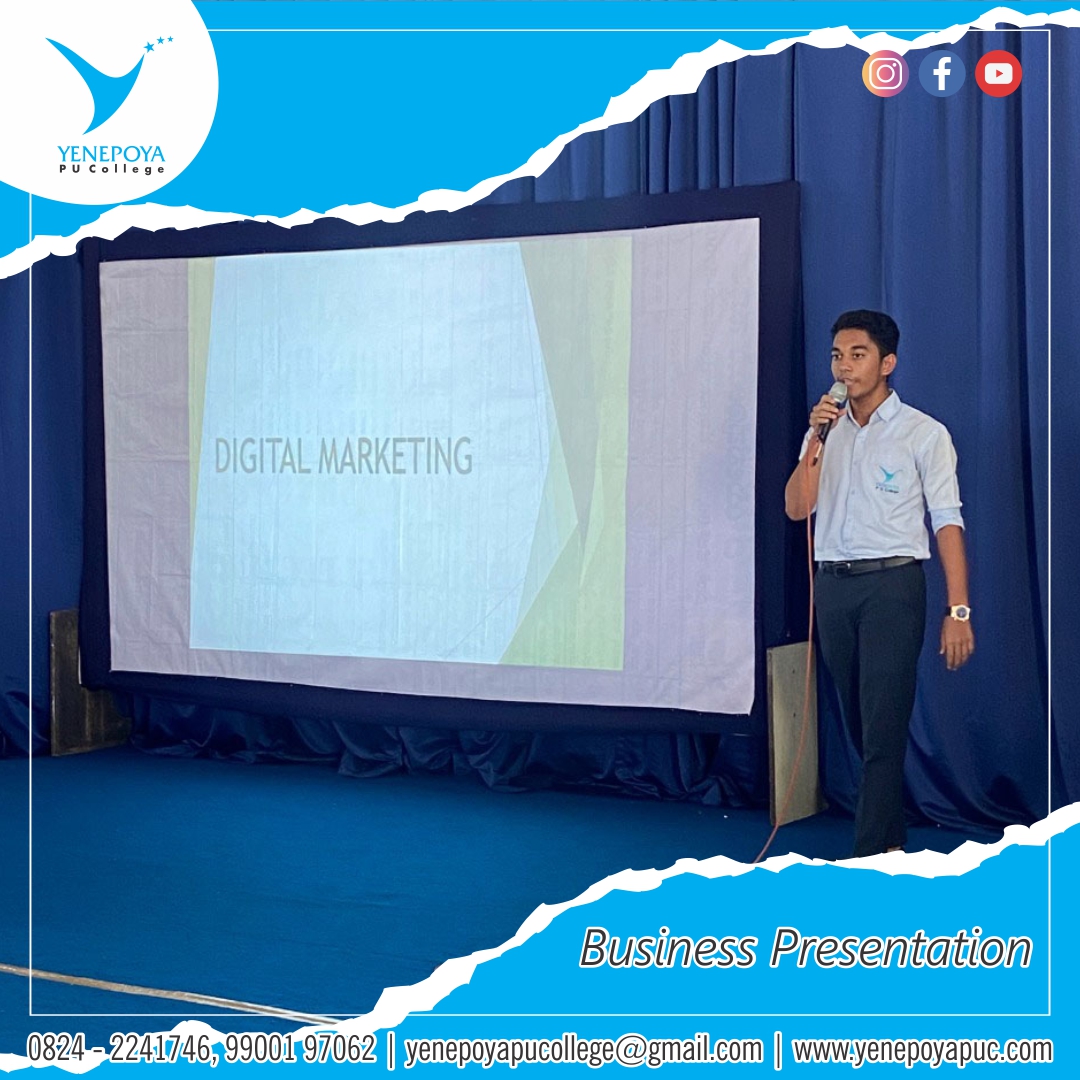 The Commerce Department of Yenepoya PU College organised Business Presentations on 16th of August 2022. The session was inaugurated by lighting the lamp. Mrs. Suchitha Rai, co-owner of Ferns and Petals was the chief guest. The session was Presided over by Mr. Uzwal Menezes, Principal Yenepoya PU College. The Campus Director, Mrs. Mishria Javeed, Mr. Mahamad Yusuf, Senior HR and Accounts Admin, Mr. Melwin, Dean of Commerce were the dignitaries present during the session. The judging panel included Mrs. Suchitha Rai and Mr. Mahamad Yusuf. The presentations were done by the l PU and ll PU students. The topics for the presentations were given ahead to the students and there were nine teams who participated. Each team consisted of four students and the presentation time allotted was 15 minutes of which 5minutes was for Q & A. The students had put forth their best efforts in the presentation which was highly commendable. Faadil Abdul Qadir and team of ll PU Batch A bagged the first prize and Zaima of ll PU Batch B won the second prize. Medals and certificates were awarded to the winners by the dignitaries. The presentations had won the hearts and minds of the audience. The entire programme was co-ordinated with the support of the Principal, Dean of Commerce and the faculty of Commerce and Language Department.