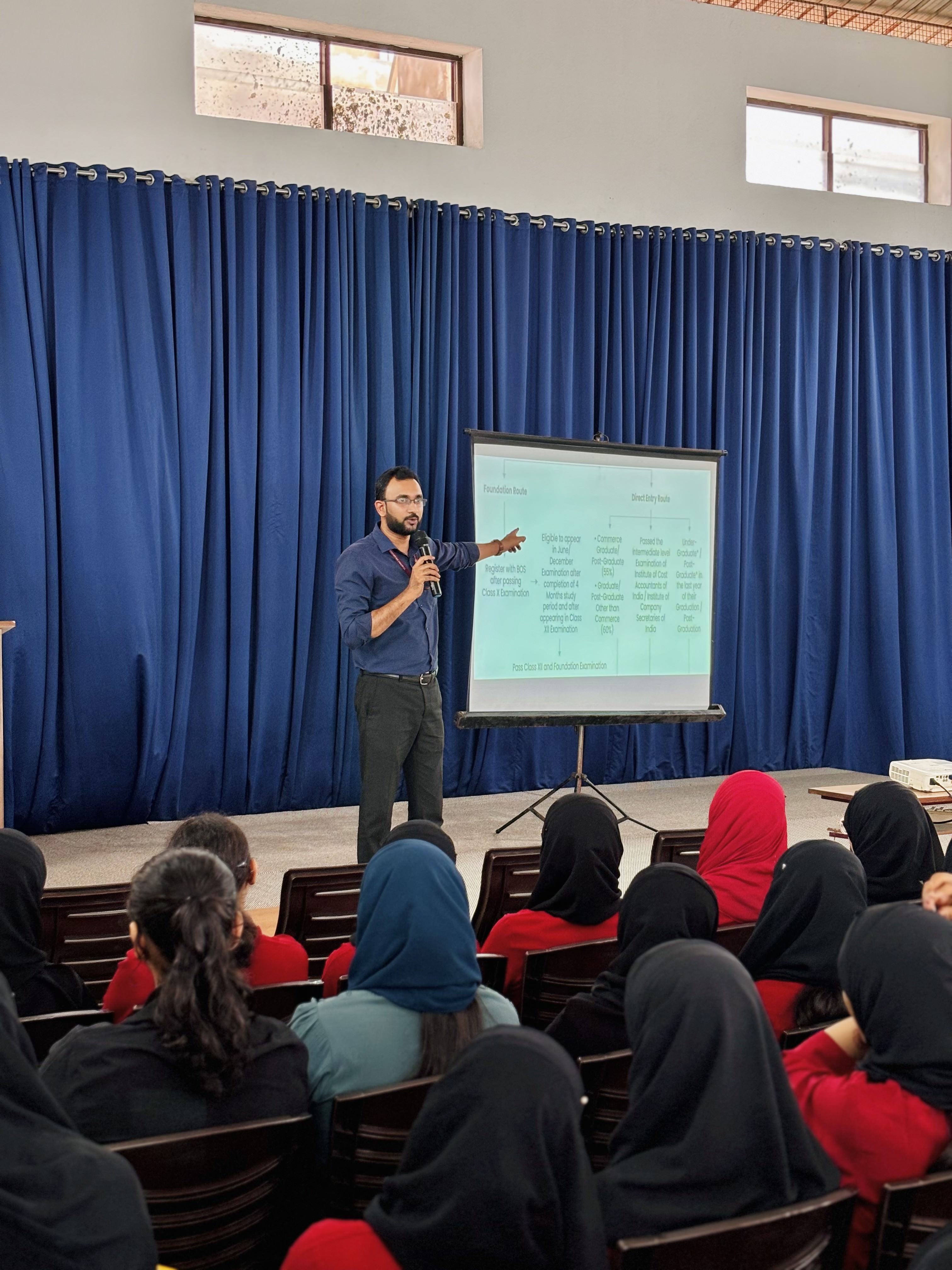 A motivational session, "Unlock Your Potential with CA,” by Mr Stany Lobo encouraged students to pursue a career in chartered accountancy, emphasizing the benefits of the profession. He highlighted the diverse career opportunities available to chartered accountants, including job roles in various industries and the potential for global recognition.